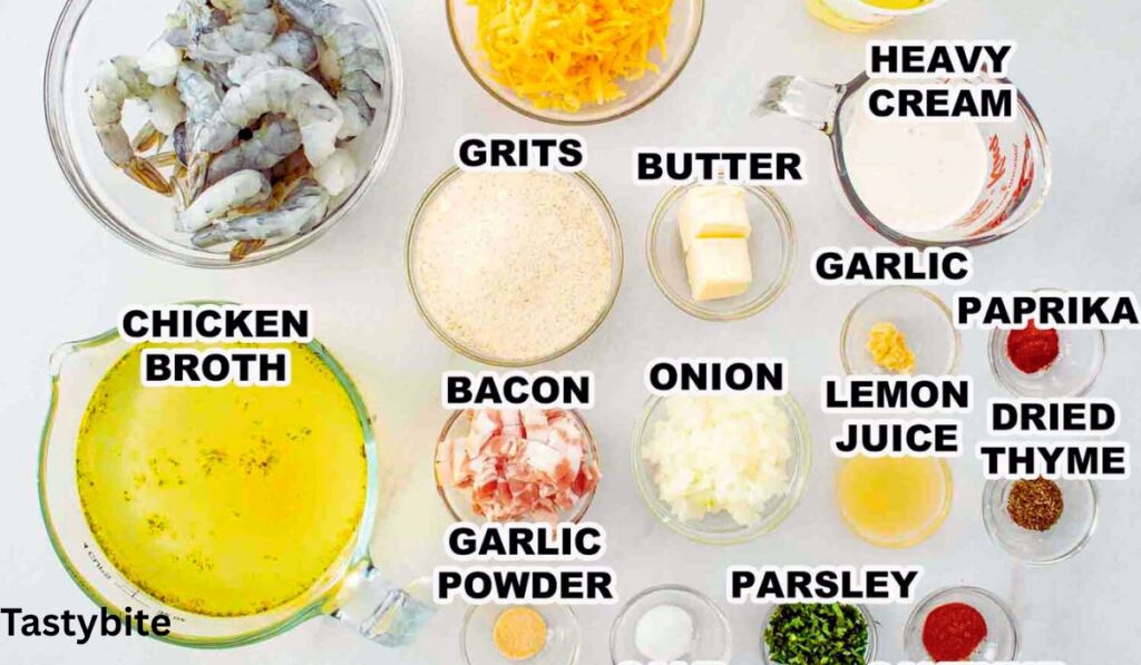 So here the key ingredients you’ll need to make creole shrimp and grits recipe:
